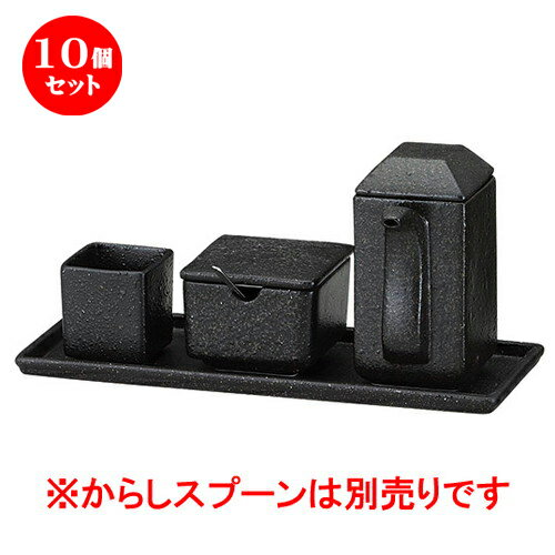 10個セット ☆ 調味料入れ ☆ ヘリテージ 黒びぜん カスター3点セット(からしスプーンは別売り) 【 飲食店 料亭 旅館 レストラン カフェ 和食器 業務用 日本食 】